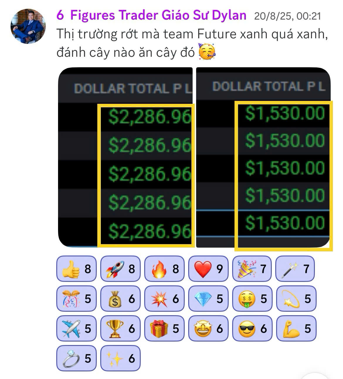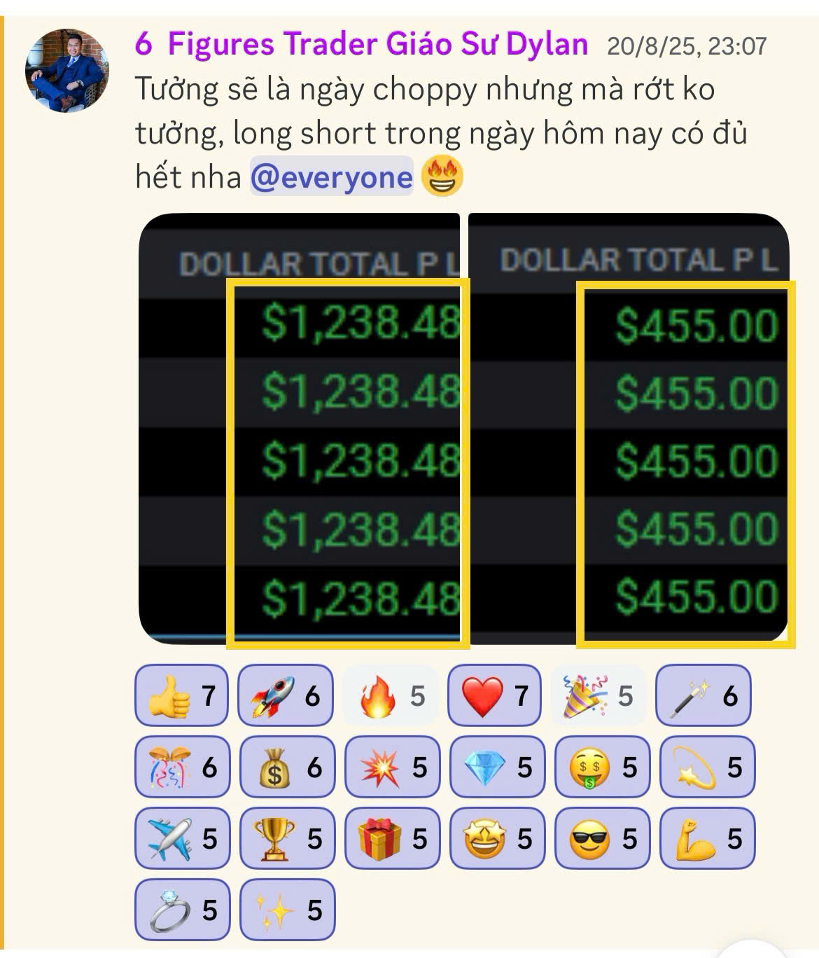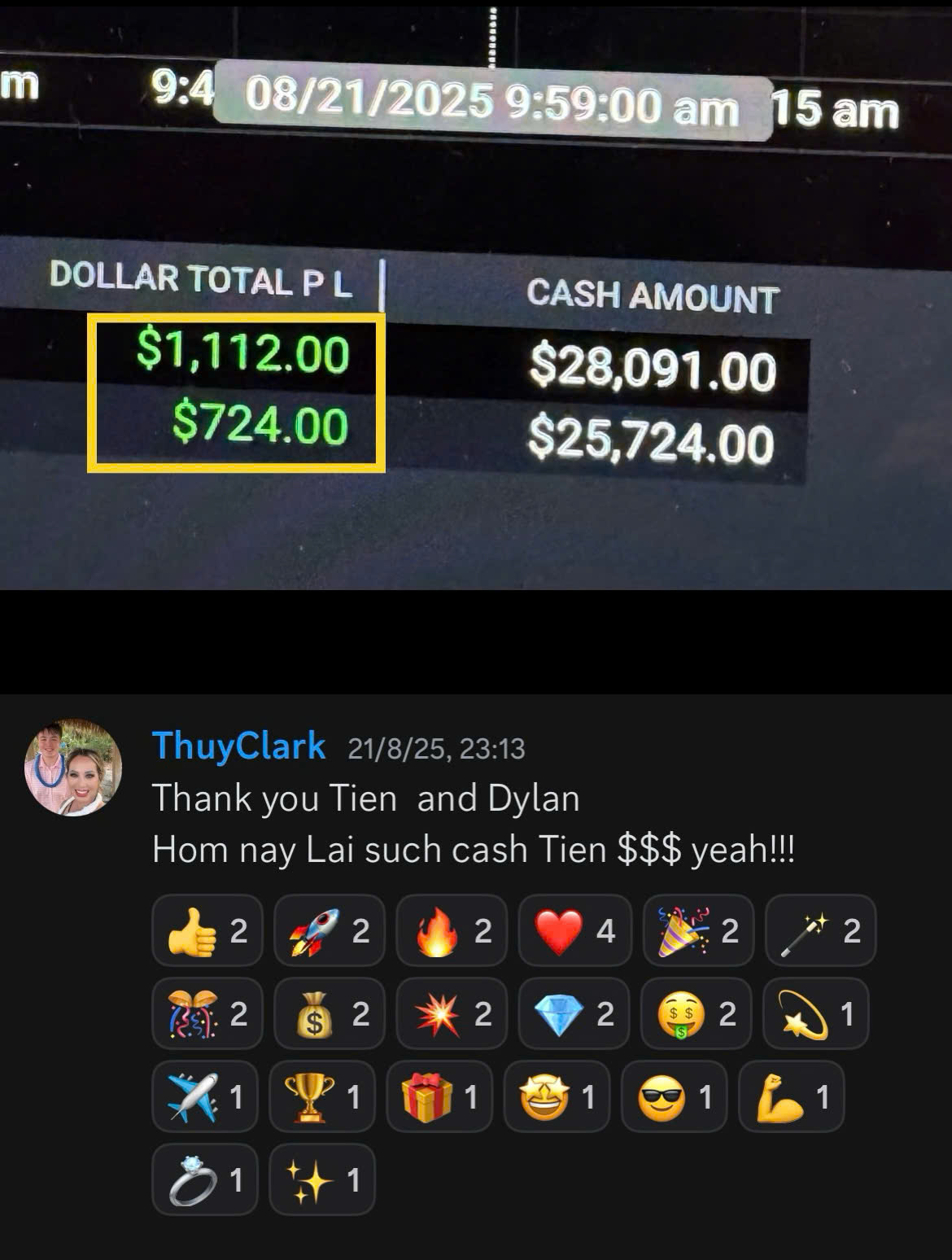 Học viên sẽ cùng tham gia Live Trade với CEO Mau Bui & Mr. Dylan Nguyen để thực chiến Trading kiếm lợi nhuận bền vững.