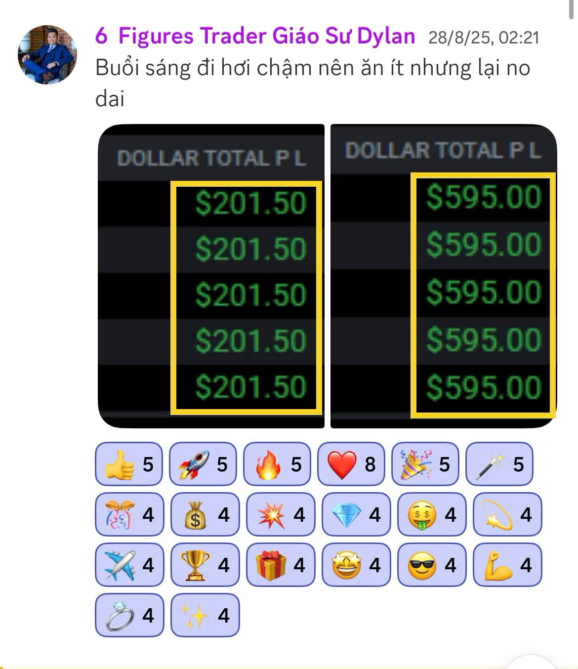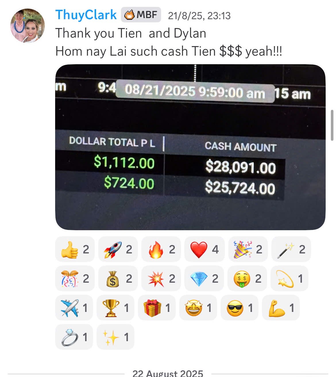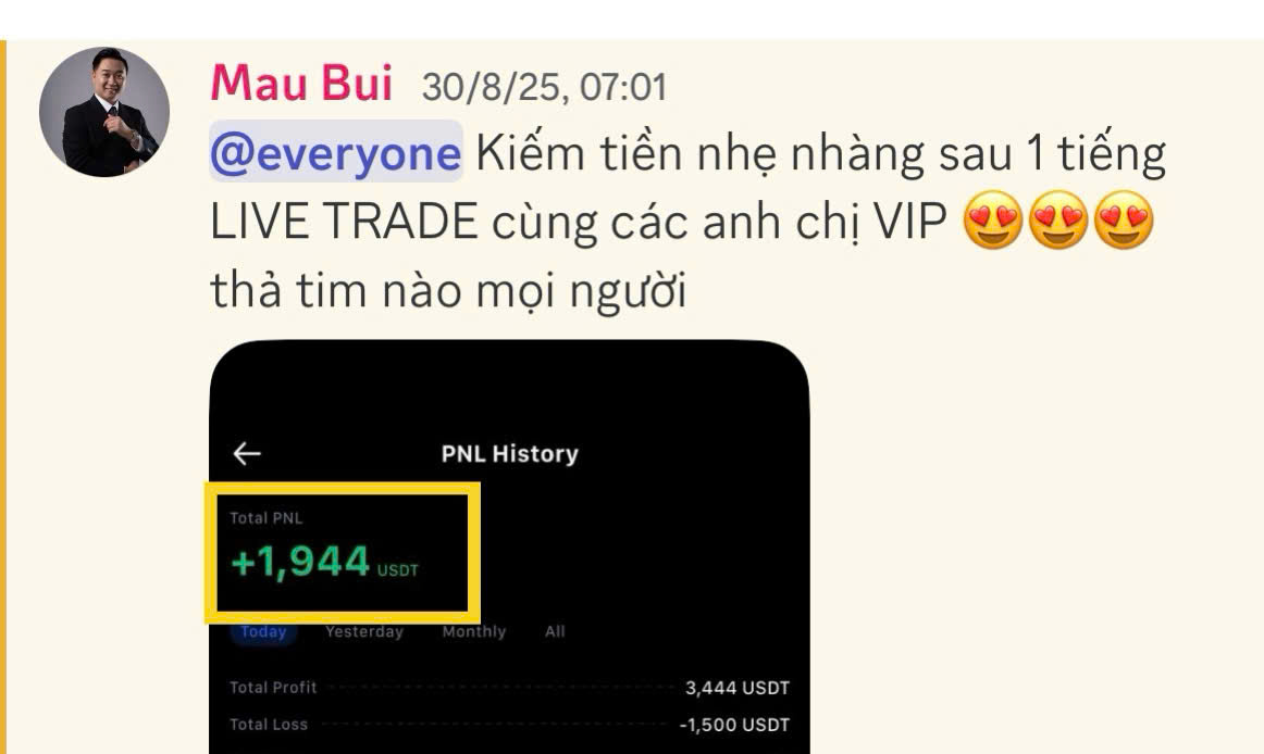 Học viên sẽ cùng tham gia Live Trade với CEO Mau Bui & Mr. Dylan Nguyen để thực chiến Trading kiếm lợi nhuận bền vững.